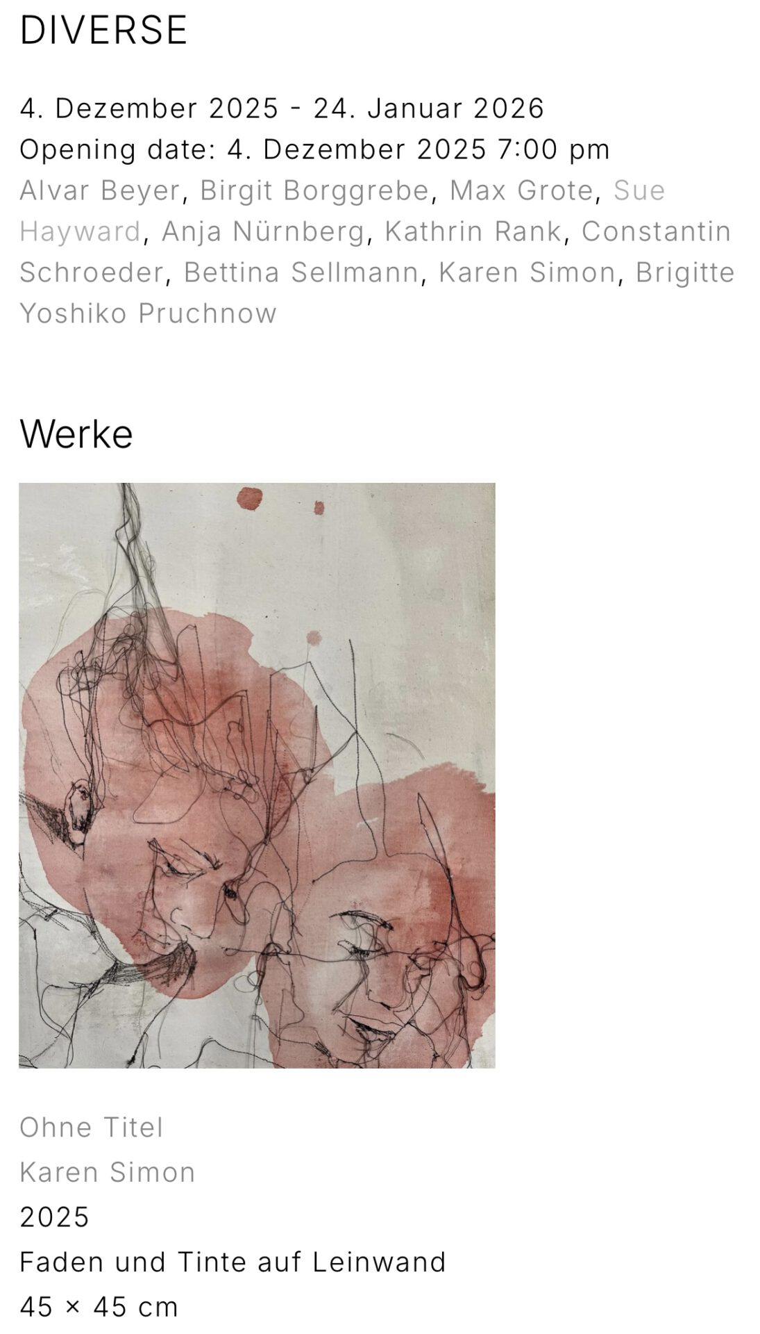 Farbflächen zerlaufen. Die Beschaffenheit der Stoffe liegt bloß. Das Farbspektrum reicht von leuchtendem Kobaltblau bis hinein ins zarte, kaum noch wahrnehmbare Pastell. In diese Stofflichkeit hinein näht Simon ihre Motive. Ihre Portraits erzählen von Vergänglichkeit; gerade ihre Fragmenthaftigkeit und Abstraktion lassen sie verblüffend menschlich wirken. Simon entwirft fantastische Räume, unternimmt architektonische Wagnisse und lenkt den Blick in haltlose Innenräume.